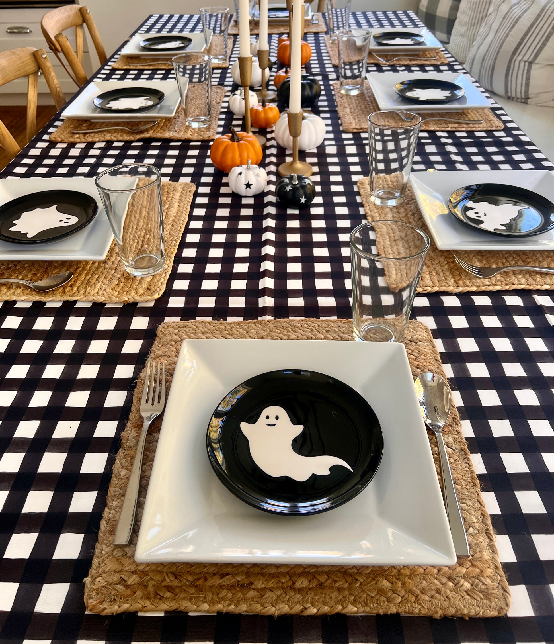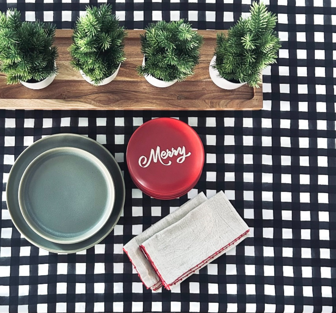 Black and white buffalo check. This buffalo check has bold black lines with a slight watercolor finish - a beautiful update on a classic design. A summer staple. Add orange for your Halloween table or red and green for a traditional Christmas look. Check is 3/4" x 3/4".