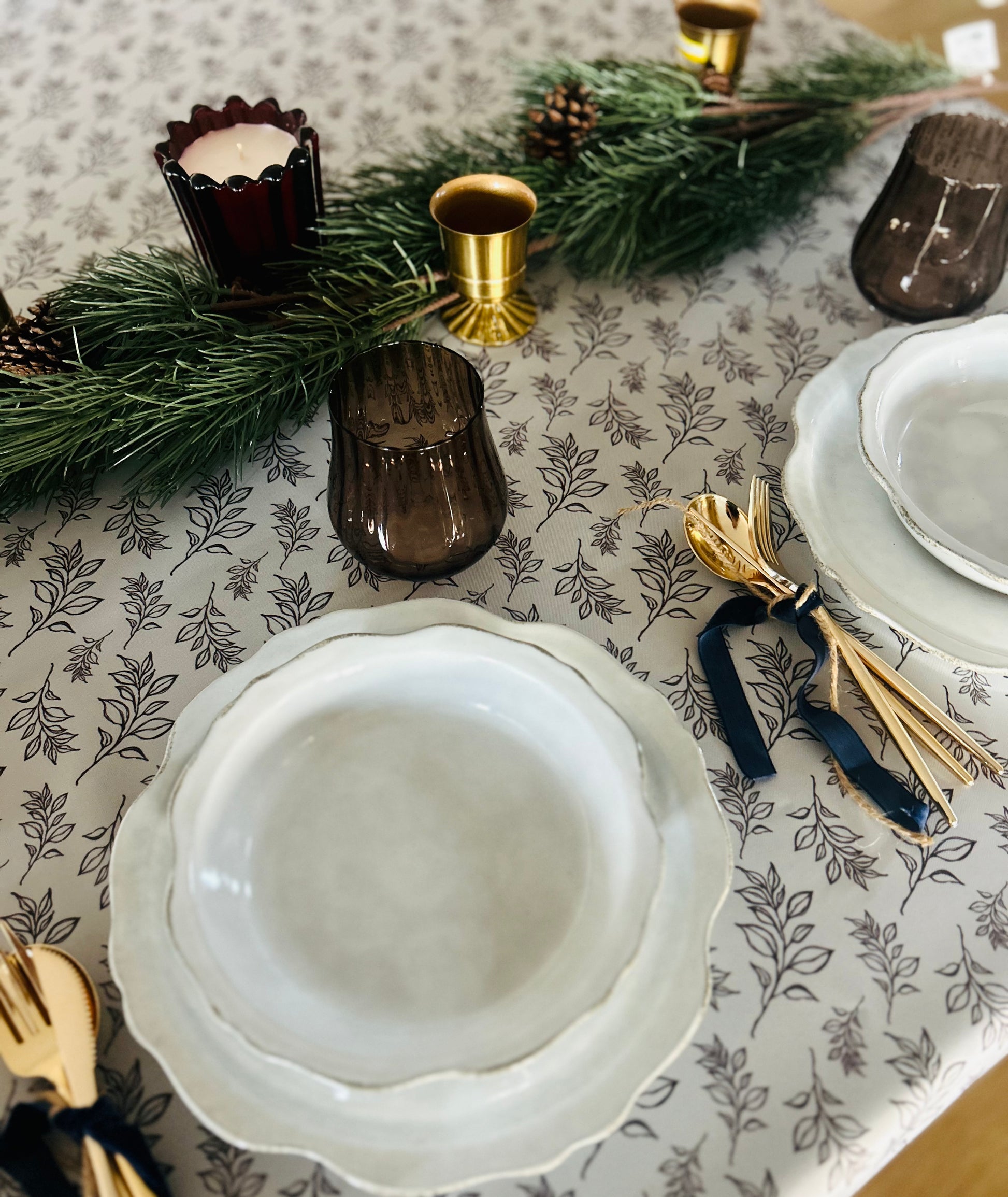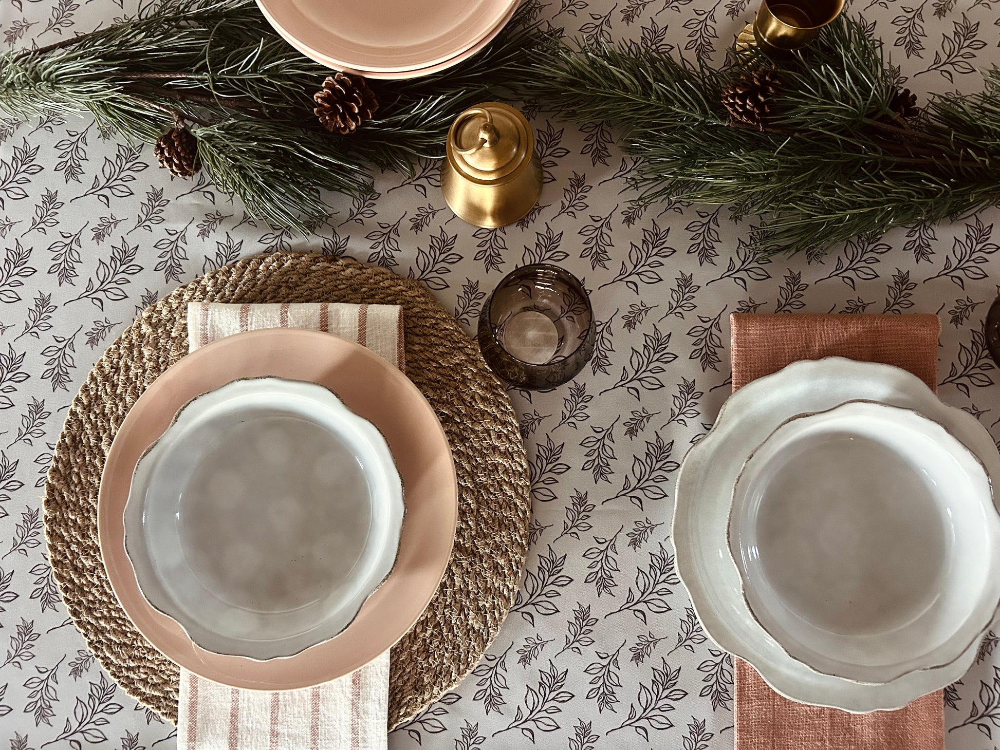 A soft gray base with simple chocolate brown floral stems. The Montt Floral mixes cool and warm tones perfectly. This combination creates a rich pattern that will elevate any gathering.